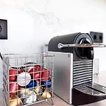 Es gibt eine komplette Küche, zu der auch eine Mikrowelle, eine Kaffee-/Teemaschine und ein Kühlschrank gehören.